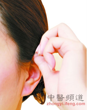 以食指贴耳廓内层,拇指贴耳廓外层,不分凹凸高低处,相对捏揉。如果发觉痛点或结带不舒服处,表示对应的器官或肢体有病变的可能,适度多多捏揉可治病。日久,痛点消失说明局部病变有好转。此法不拘遍数,做2~5分钟,以耳部感到发热为止。此法有健脑、强肾、聪耳、明目之功。可防治阳痿、尿频、便秘、腰腿痛、颈椎病、心慌、胸闷、头痛、头昏等疾病。