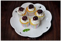 冷却后打发奶油装饰,撒上巧克力屑,顶上装饰一枚车厘子